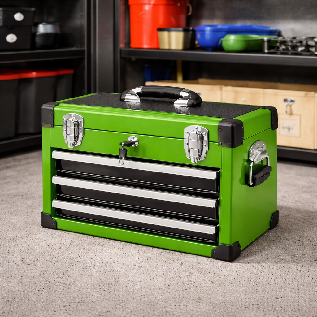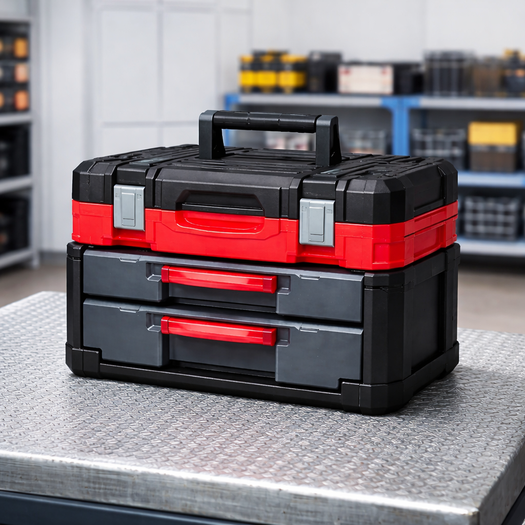 Werkzeugkiste zur Aufbewahrung und zum Transport von Werkzeugen und Zubehör. Mit Fächern zur übersichtlichen Organisation geeignet für Werkstatt, Garage oder mobilen Einsatz.