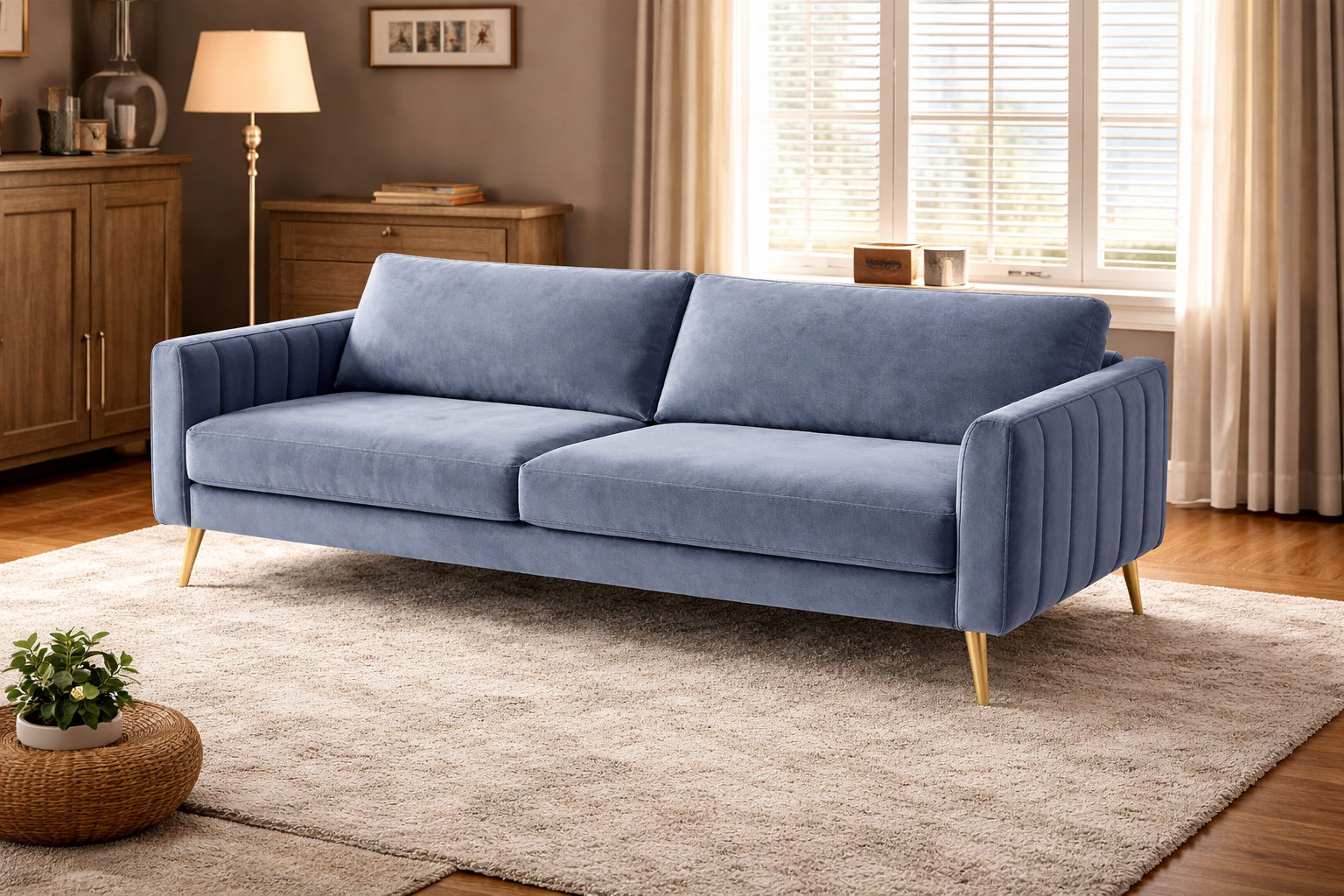 Sofa mit gepolsterter Sitzfläche und Rückenlehne, geeignet für den Einsatz im Wohnbereich. Bietet Platz zum Sitzen und Ausruhen im Alltag und lässt sich in verschiedene Raumkonzepte integrieren.